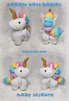 This listing is an original pattern (written in English) to create your own Bubble Butt baby ALICORN! Browse through my other listings to see more Bubble Butt babies!
