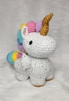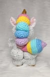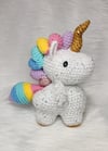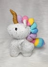 Crochet amigurumi PDF pattern for a cute baby winged Unicorn (Alicorn) with a bubble butt.
