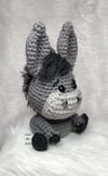 Crochet amigurumi PDF pattern for a Donkey with a bubble butt.