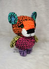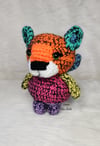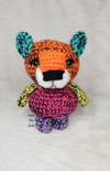 Crochet amigurumi PDF pattern for a little baby leopard with a bubble butt. This piece was inspired by the artist Lisa Frank.