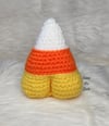 Crochet amigurumi PDF pattern for a Candy Corn with a bubble butt.