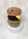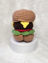 Crochet amigurumi PDF pattern for a Cheeseburger with a bubble butt.