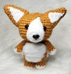 Crochet amigurumi PDF pattern for a cute baby Corgi with a bubble butt.
