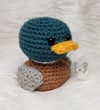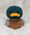 Crochet amigurumi PDF pattern for a cute baby Mallard duck with a bubble butt.