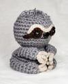 Crochet amigurumi PDF pattern for a cute baby SLOTH with a bubble butt.