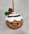 Crochet amigurumi PDF pattern for a BAUBLE CINNAMON BUN ORNAMENT with a cute bubble butt.