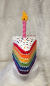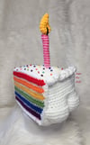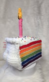 Crochet amigurumi PDF pattern for a rainbow cake with a bubble butt.