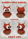 Crochet amigurumi PDF pattern for a cute baby OWL with a bubble butt.
