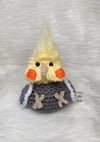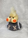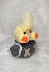 Crochet amigurumi PDF pattern for a Cockatiel with a bubble butt.