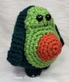 Crochet amigurumi PDF pattern for a cute baby avocado with a bubble butt.