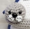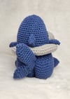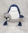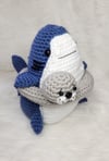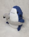 Crochet amigurumi PDF pattern for a baby shark with a cute bubble butt.