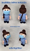 Crochet amigurumi PDF pattern for a CAREGIVER with a bubble butt.
